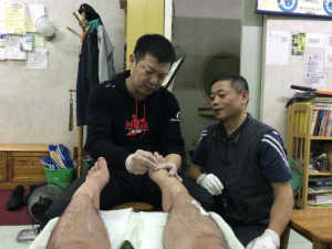 実際にお会いして話したら、なんと良い方で台湾式の足つぼを教えましょうと言ってくれました。幸運なことにその時間帯が先生のお店が少しゆっくりなので話ながら足つぼの流れから教えてもらいました。さすが本場ですね、自分たちの技とプラス何かがそこにある感じでした。